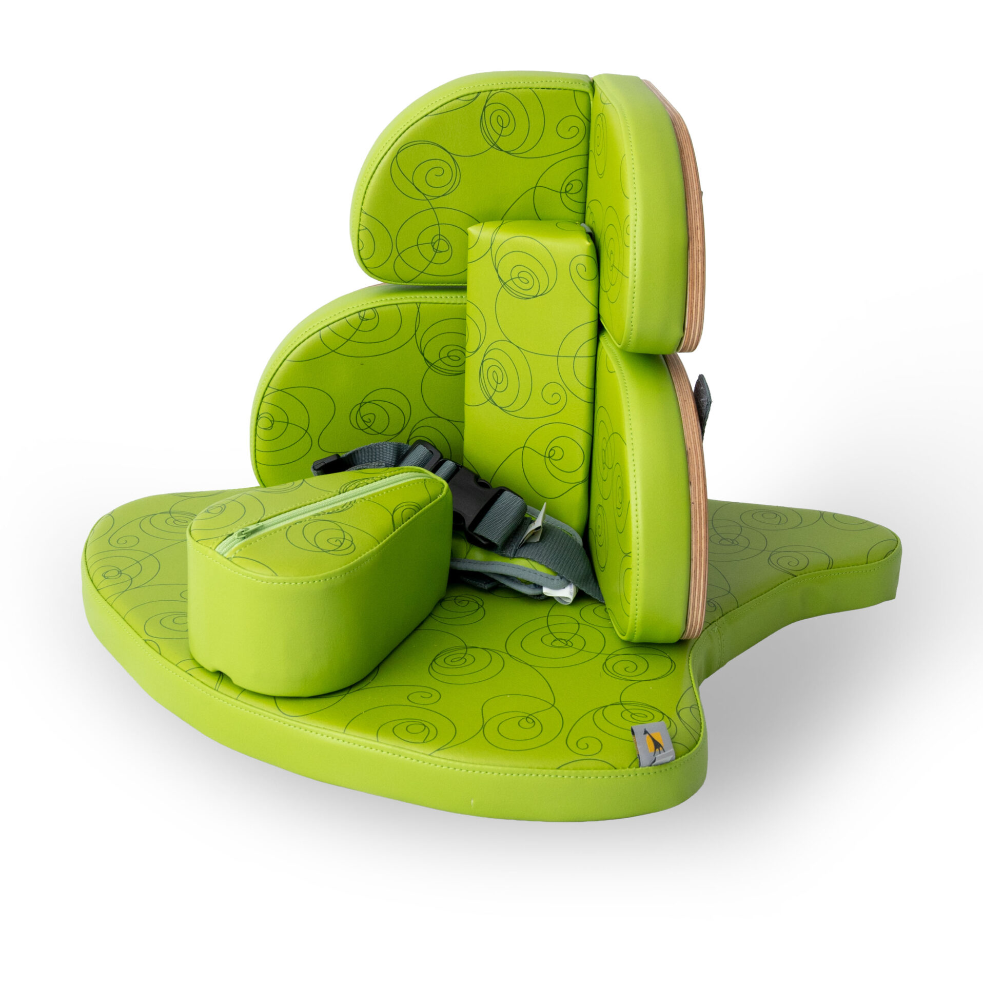 Corner Seat by Jenx is an adjustable floor based seating system for infants and young children.  It offers support in long sitting, which is children’s usual first sitting position.  It is a bright and comfortable ideal first seat for any child. This rental includes extra wedges to assist with positioning.