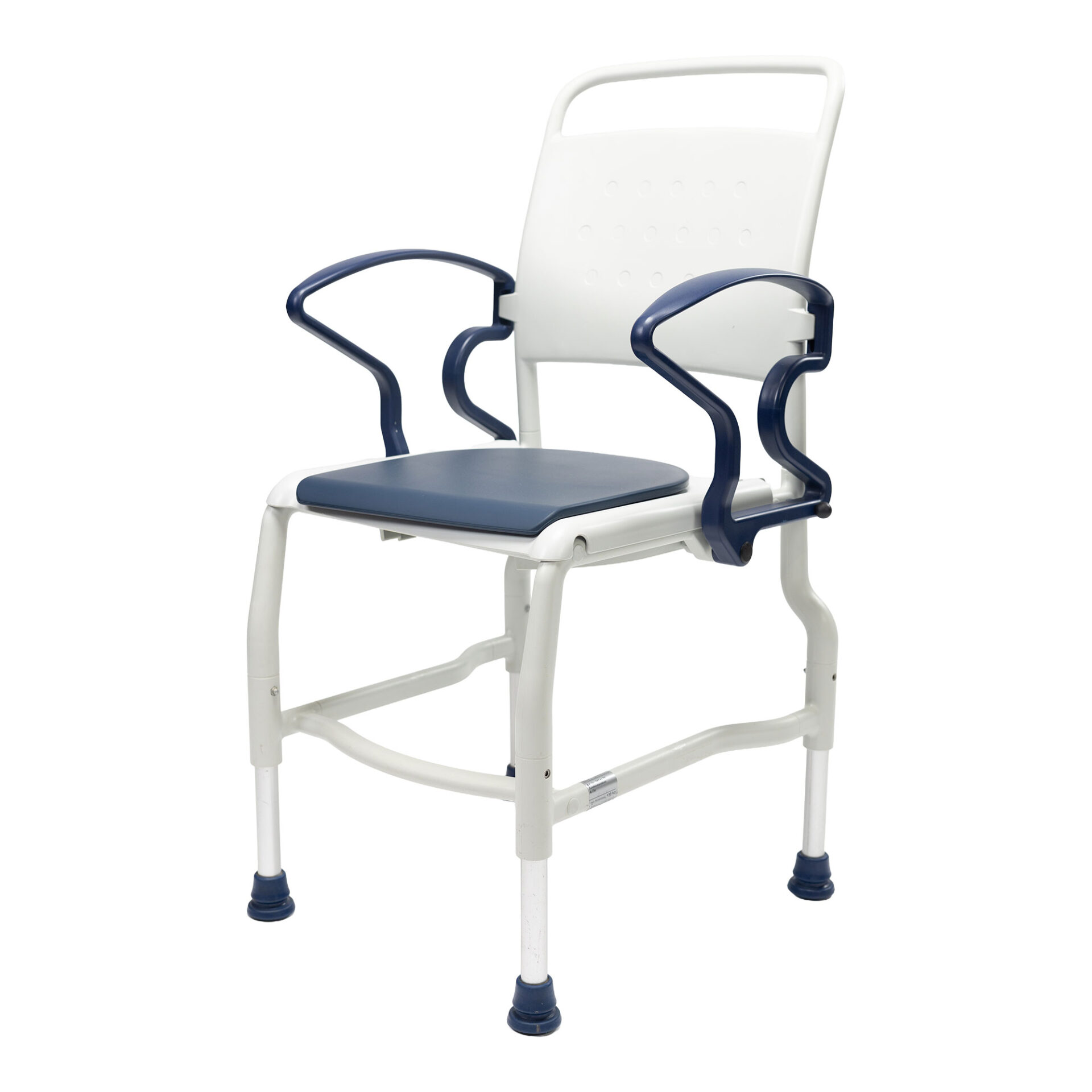 Folding armrests allow for easier side transfers, and non-slip rubber ferrules on the legs ensure stability on wet surfaces. The chair’s lightweight design and compact footprint make it suitable for both residential and clinical settings, offering caregivers a practical and safe solution for daily hygiene support.