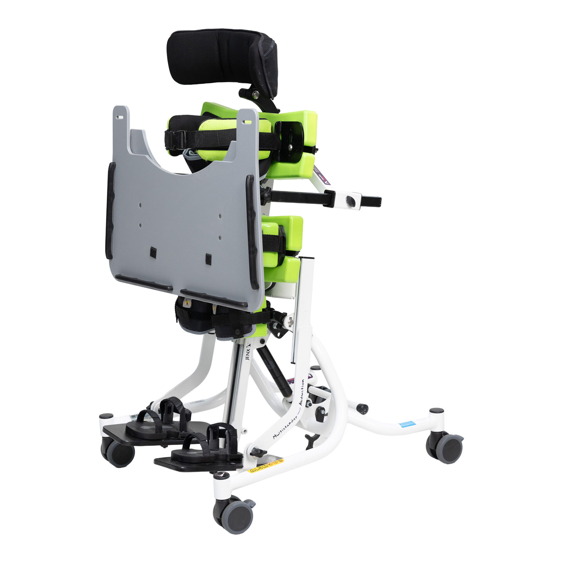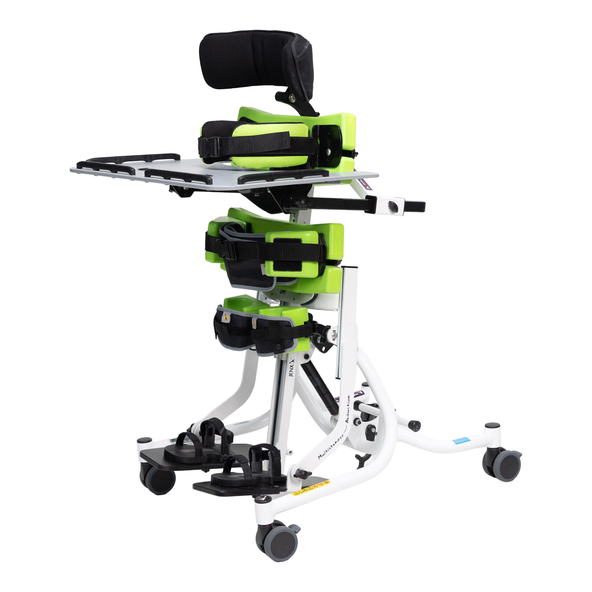 The Jenx Multistander is a highly adaptable standing system that provides upright, prone, and supine positioning for children. Engineered to support complex postural requirements, it features independently adjustable thoracic and pelvic boards, antimicrobial PU support pads.